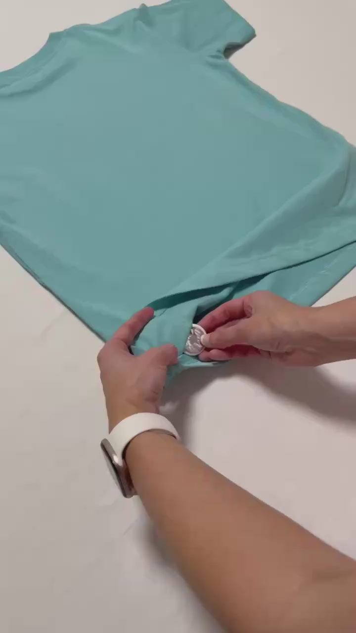 It looks like a comfy everyday tee, but inside there's a discreet hidden pocket designed to fit an AirTag. Pop it in, secure it and it sits flat and out of site. No clips, no bulky add ons and nothing for little hands to pull off. Just a simple layer of peace of mind for busy families.